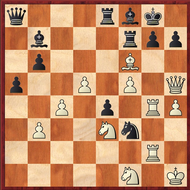 In der Diagrammstellung hätte Weiß elegant mit 22.Se4 Lxe4 23.Lxh6!! den Sack zumachen können. Doch er fand die Lösung nicht und zog stattdessen 22.Sh3?, wonach Dmitrij mit 22…Dd4+ 23.Dxd4 cxd4 die Damen tauschen und im Endspiel die Mehrqualität verwerten konnte. Endstand: 6.0:2.0.