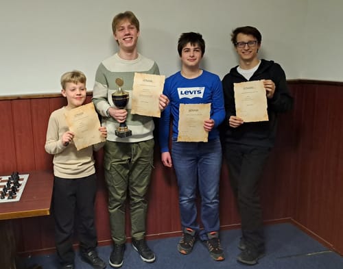 Nach dem Remis durch Thomas Lucke in ausgeglichener Stellung waren es die „3 älteren Herren an den Brettern 2 bis 4“, die zusammengerechnet annähernd 150 Jahre Erfahrung einwerfen konnten und mit 2,5 Punkten aus den 3 Partien den Grundstein für diesen Erfolg legten. Obwohl alle 3 Gegner ein deutliches Übergewicht bei den Wertungszahlen aufwiesen, gelangen Edgar Ribbeheger und mir ein Sieg und Wolfgang Förster holte ein Remis (gegen Pascal Werrn).