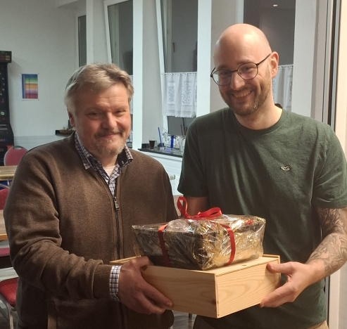 Den Präsentkorb gewann Andreas Klein (links im Bild).
